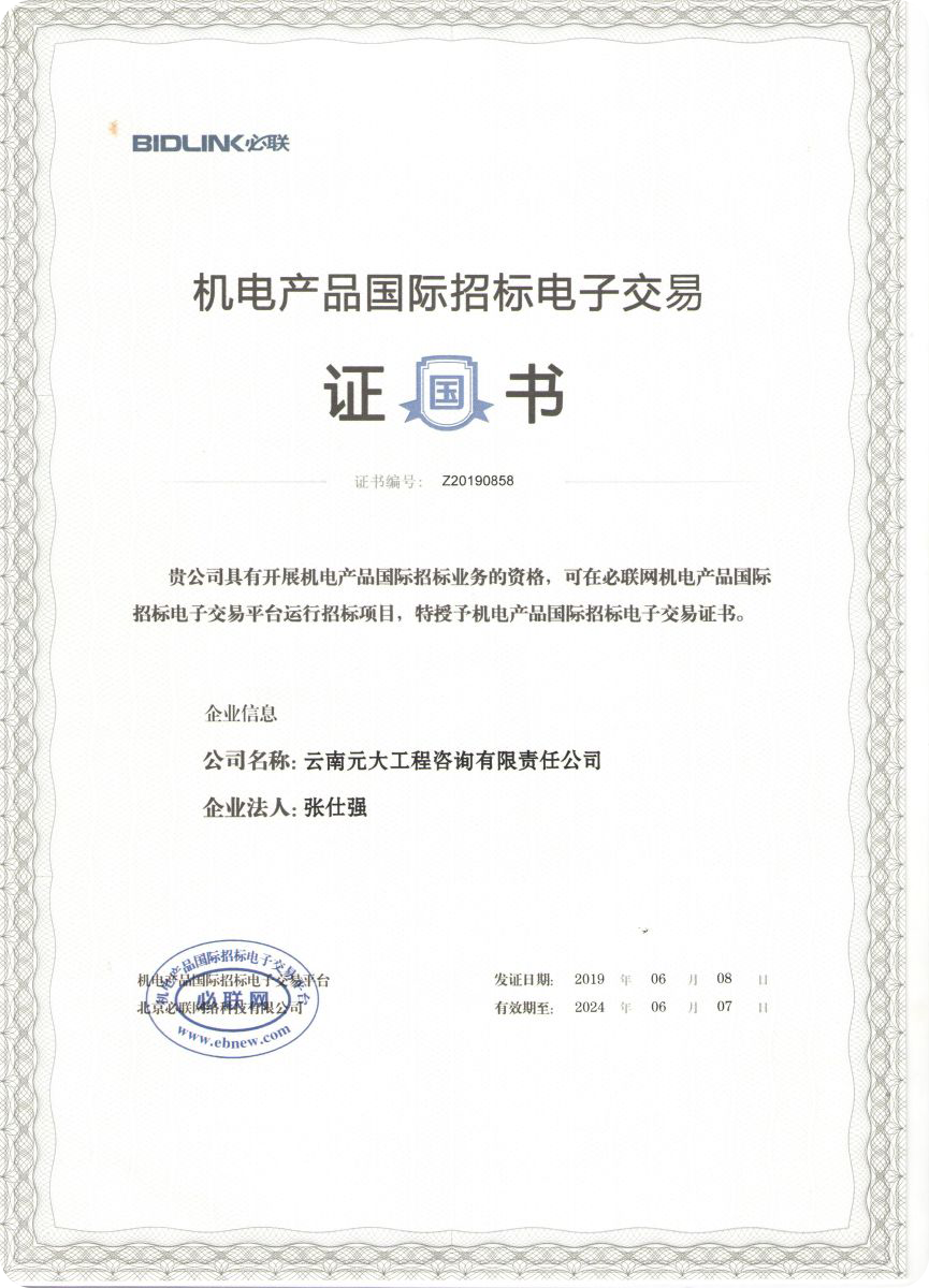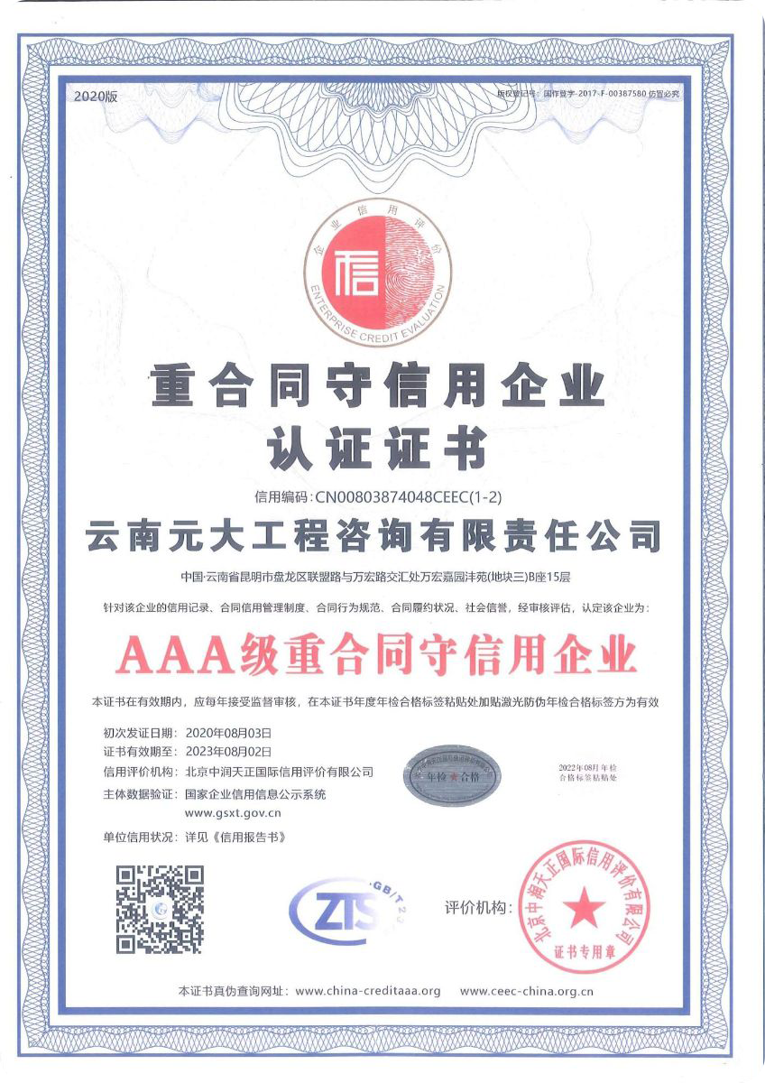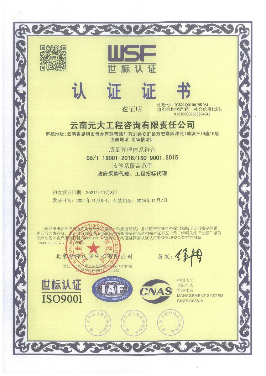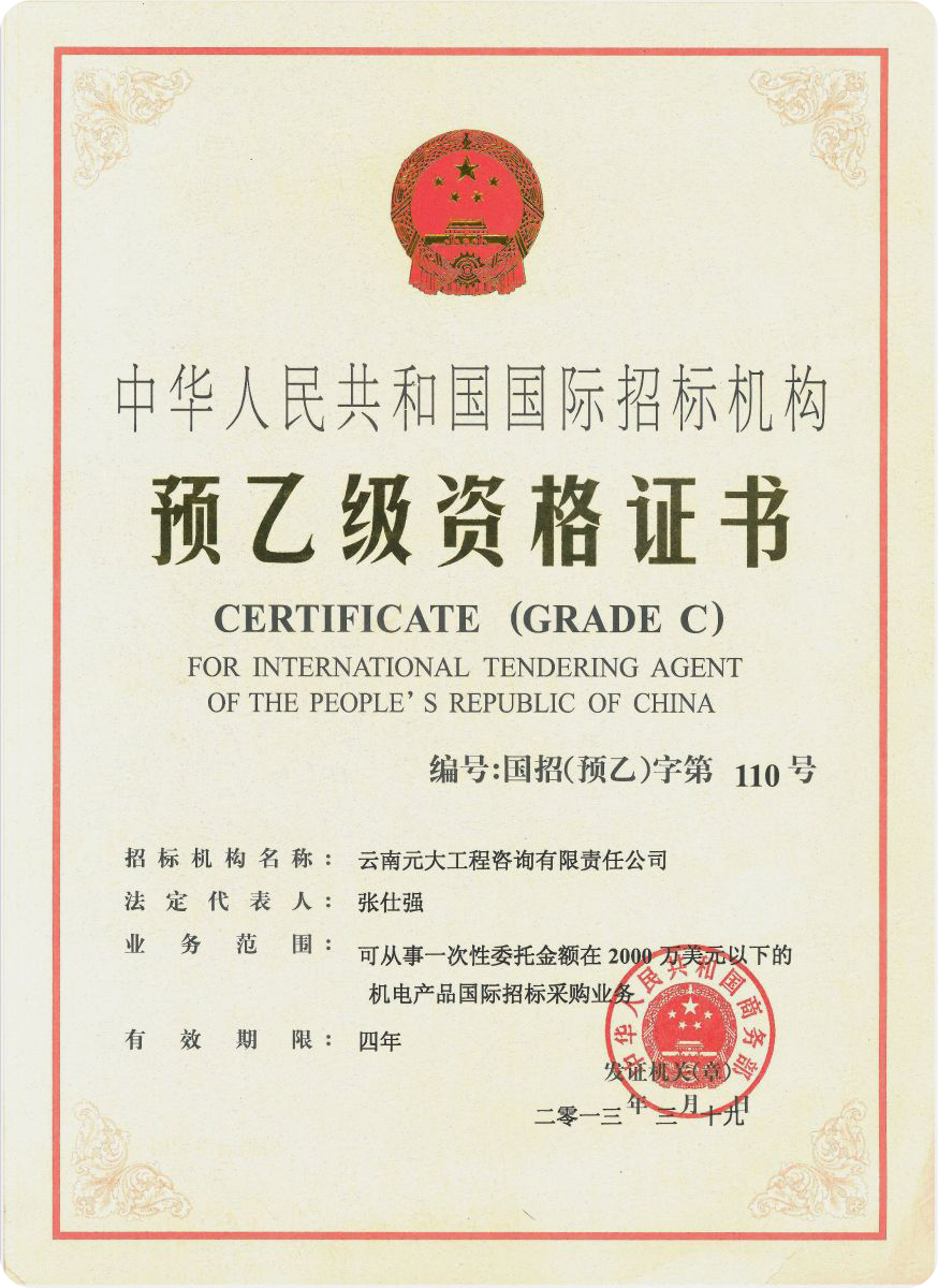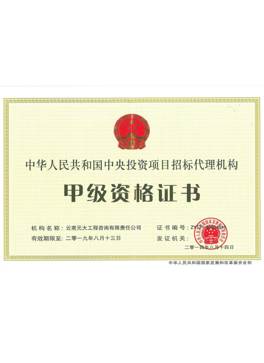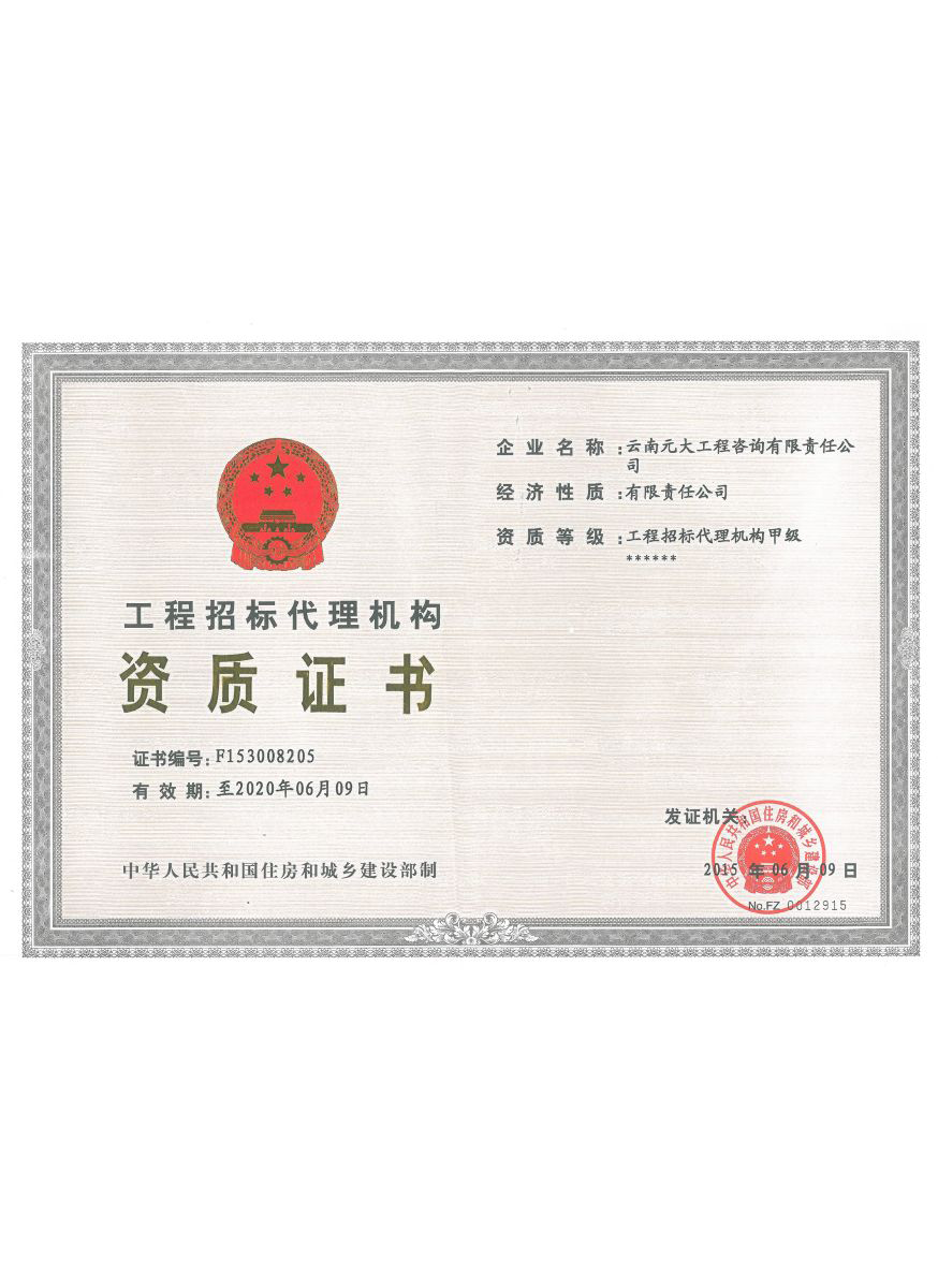 公司是云南省招標(biāo)投標(biāo)行業(yè)協(xié)會(huì)會(huì)長(zhǎng)單位,現(xiàn)為云南省住建廳信用評(píng)級(jí)招標(biāo)代理機(jī)構(gòu)AAA級(jí)單位。公司先后榮獲住建部頒發(fā)的“工程招標(biāo)代理機(jī)構(gòu)甲級(jí)資質(zhì)證書(shū)”、財(cái)政部頒發(fā)的“政府采購(gòu)代理機(jī)構(gòu)甲級(jí)資格證書(shū)”,并在財(cái)政部及中國(guó)政府采購(gòu)網(wǎng)“政府采購(gòu)代理機(jī)構(gòu)名單”登記備案、獲得國(guó)家發(fā)展改革委頒發(fā)的“中央投資項(xiàng)目招標(biāo)代理機(jī)構(gòu)甲級(jí)資格證書(shū)”、商務(wù)部頒發(fā)的“國(guó)際招標(biāo)機(jī)構(gòu)預(yù)乙級(jí)資格證書(shū)”、機(jī)電產(chǎn)品國(guó)際招標(biāo)電子交易平臺(tái)頒發(fā)的“機(jī)電產(chǎn)品國(guó)際招標(biāo)電子交易證書(shū)”、國(guó)家國(guó)防科技工業(yè)局頒發(fā)的“軍工涉密業(yè)務(wù)咨詢服務(wù)安全保密條件備案證書(shū)”。公司已通過(guò)ISO9001:2015質(zhì)量管理體系認(rèn)證、ISO14001:2015環(huán)境管理體系認(rèn)證、ISO45001:2018職業(yè)健康安全管理體系認(rèn)證。納稅信用評(píng)價(jià)已連續(xù)三年被評(píng)為A級(jí)......